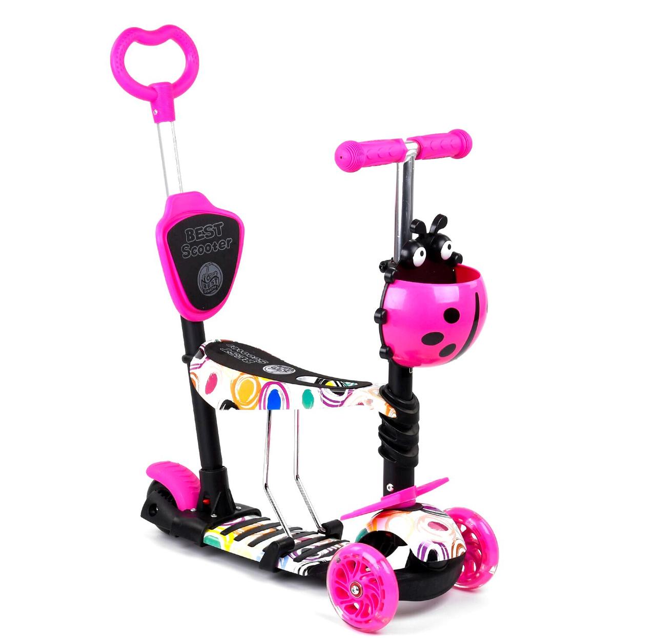 Best Scooter дитячий триколісний самокат 5 в 1 з світяться колесами і сидінням (абстракція)