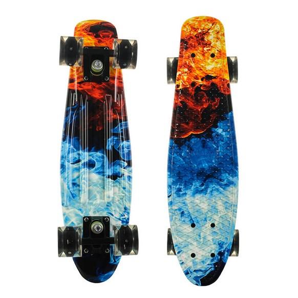 Пенніборд 25 Ice & Fire зі світними колесами PU і двостороннім забарвленням (блакитний з жовтогарячим))
