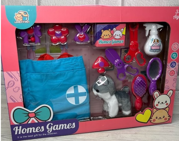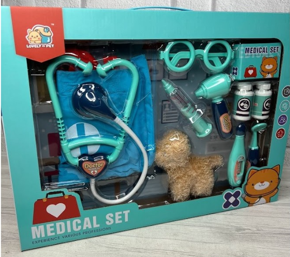 У наборі є все необхідне для маленького ветеринара: текстильна сумка, стетоскоп, шприц, термометр, пляшки з пігулками та інструменти для огляду. Кожен елемент розроблений з урахуванням безпеки дітей, щоб забезпечити веселу та безпечну гру.